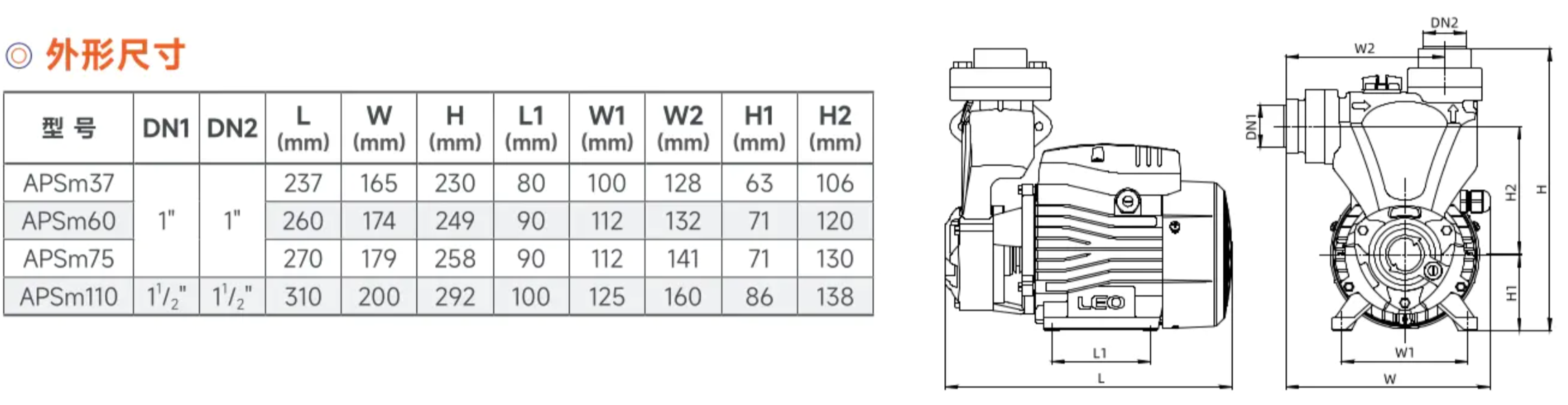 2.铜叶轮,APSm37、APSm60、APSm75配置不锈钢嵌件,APSm110配置铜嵌件;(能有效解决当水泵长期闲置重新启动时的叶轮卡住问题)